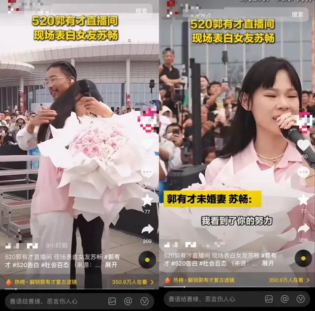 5月20日,苏畅与母亲一起现身郭有才的直播现场。“这就是默默支持我的那个女孩儿”,郭有才现场深情告白,将直播氛围推向高潮。