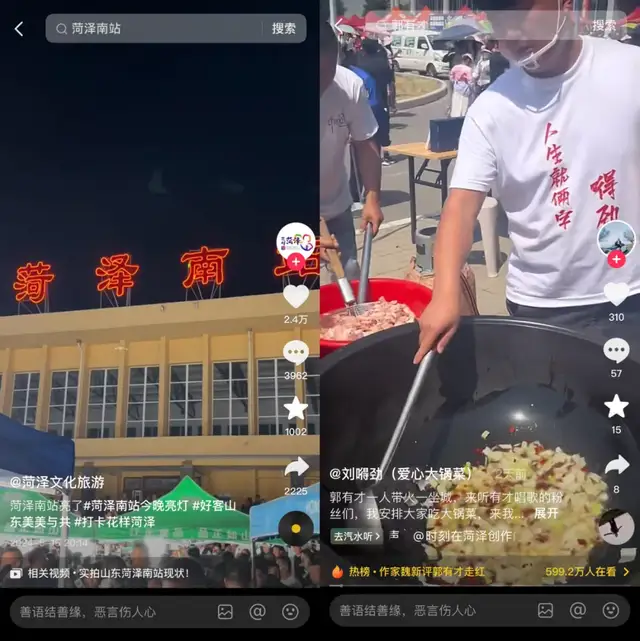 因为废弃的菏泽南站本就是构成郭有才怀旧叙事的关键要素,而且郭有才也在直播中多次大力宣传家乡菏泽,很多人开始对菏泽这个此前并不出名的小城产生了好奇。