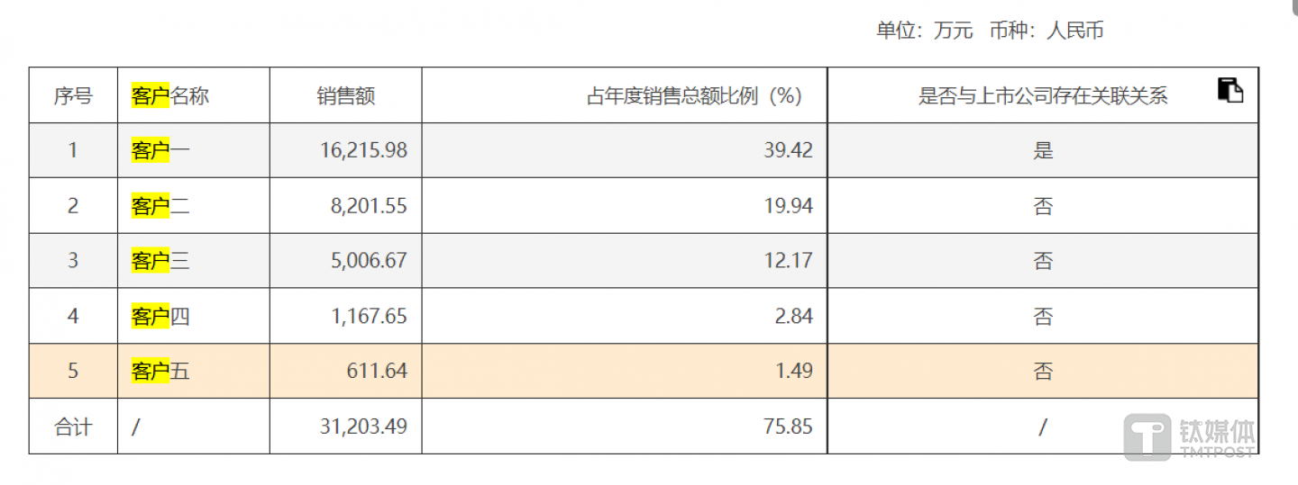 原第一大客户合作金额骤减