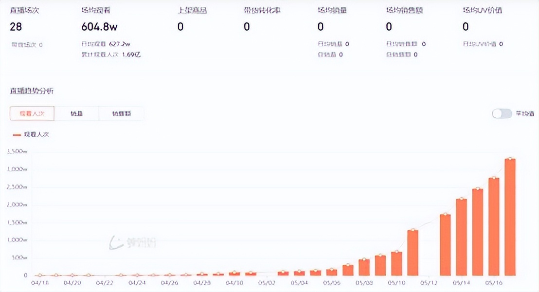 据飞瓜数据,5月7日,“菏泽树哥”郭有才抖音账号粉丝数30万人,5月11日涨至100万人,5月16日达到500万人,5月19日突破1000万人。新抖显示,其直播间观看人次从4月底的10万-20万左右,上涨到5月3日之后的百万级别,5月16日单场直播观看人次超过2774万,点赞破亿。