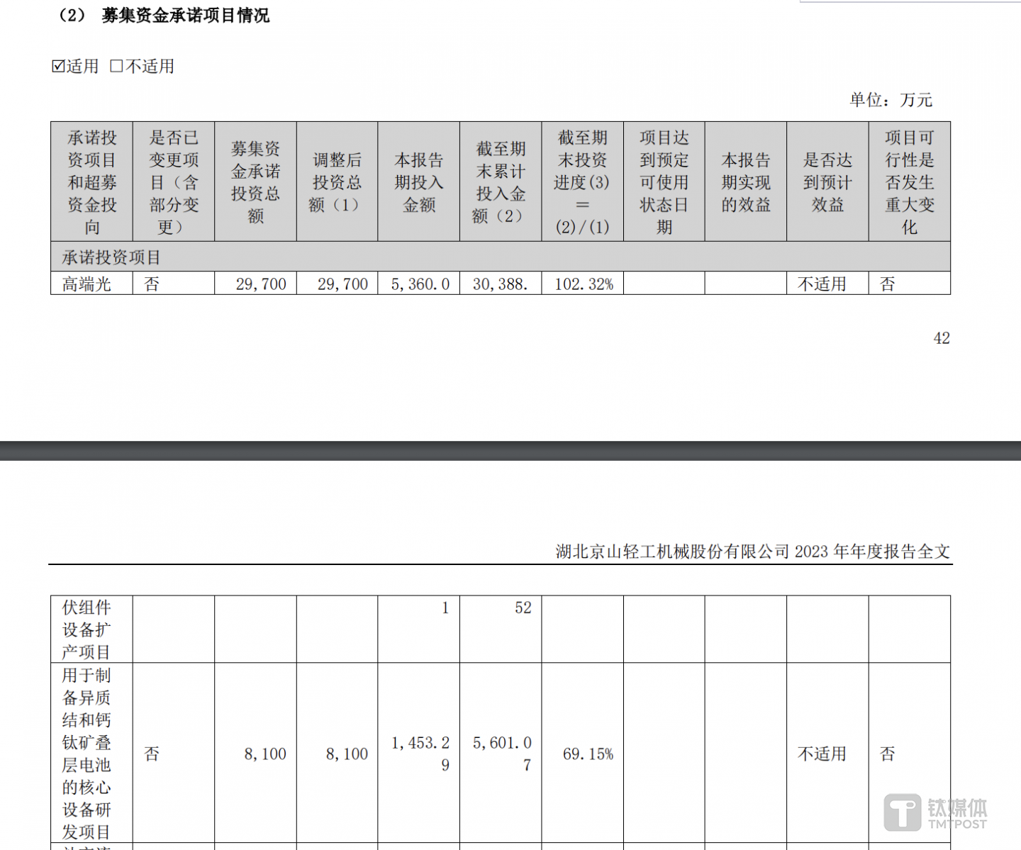除了上述财务指标遭遇问询之外,交易所还关注到京山轻机的募投项目进展情况。