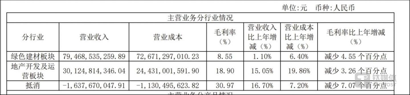 基于各业务板块的营收表现,上交所要求公司说明“区分不同业务板块,结合各业务板块内的可比公司情况,量化分析报告期内建材、地产业务毛利率变化的原因及合理性”。