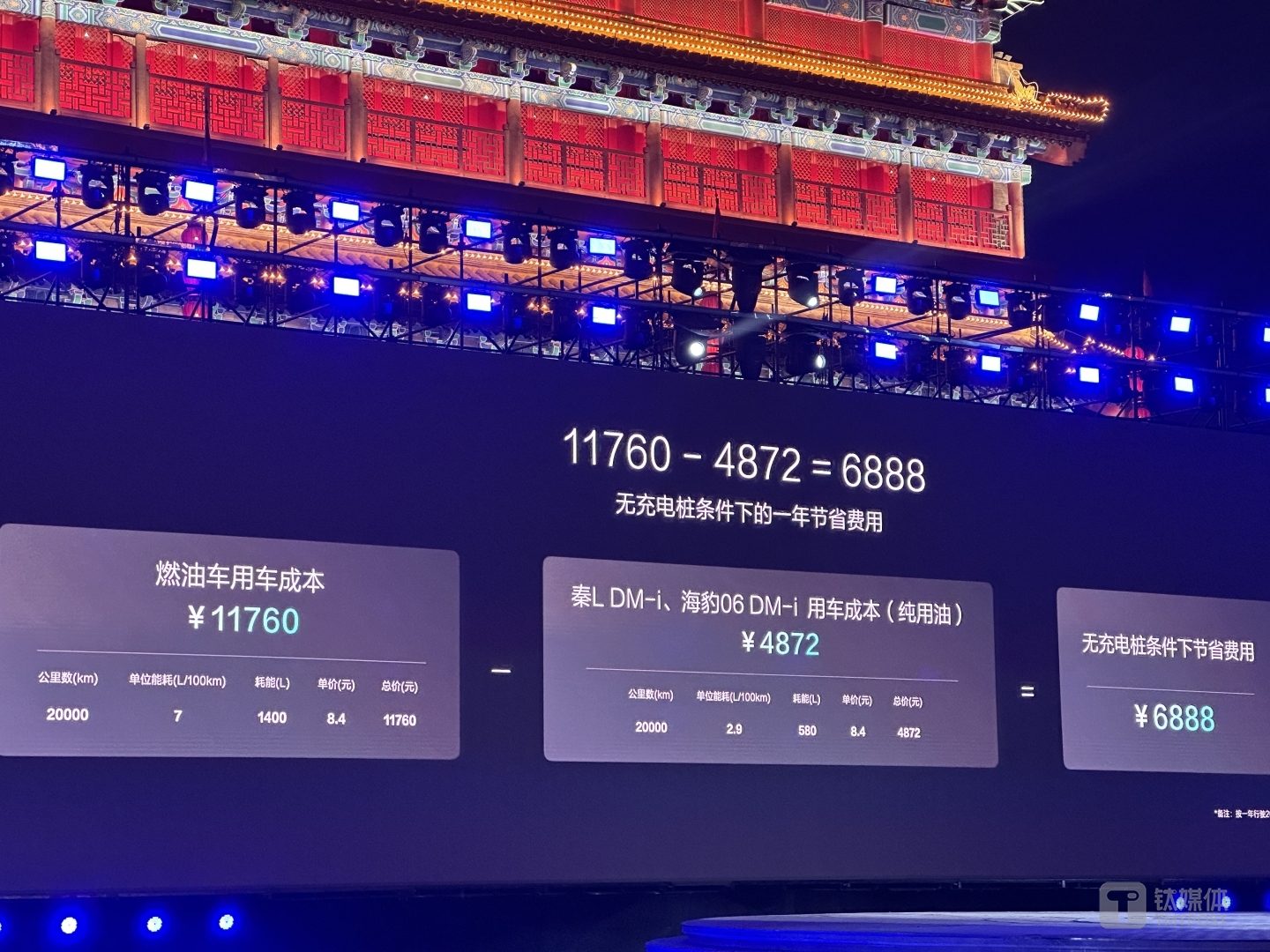 对于用户来说,第五代DM技术能让他们一年省下不少钱。比亚迪给出的数据显示,相较燃油车,在有充电条件的情况下,DM车型一年节省9682元,无充电条件一年也能节省费用6888元。