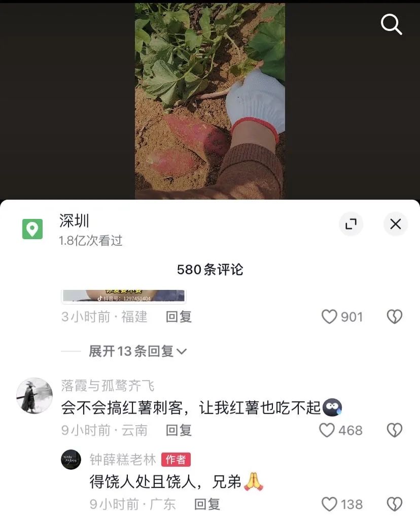 面对红薯太贵的质疑,林盛在直播间解释:“大部分人觉得寻常的东西就该是便宜的,但实际上世间昂贵的东西是纯净的空气,晒到的阳光和干净的水,和身边默默对你好的人。但这很容易被我们忽略。一个好吃的红薯,背后都是农人的点点心血,我们需要去格外珍惜。”