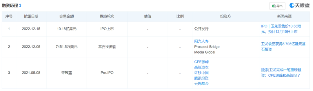 2021年5月,成立20多年的卫龙首次公开进行Pre-IPO轮融资;投资者名单明星云集,包含高瓴、腾讯、红杉等一线投资机构。