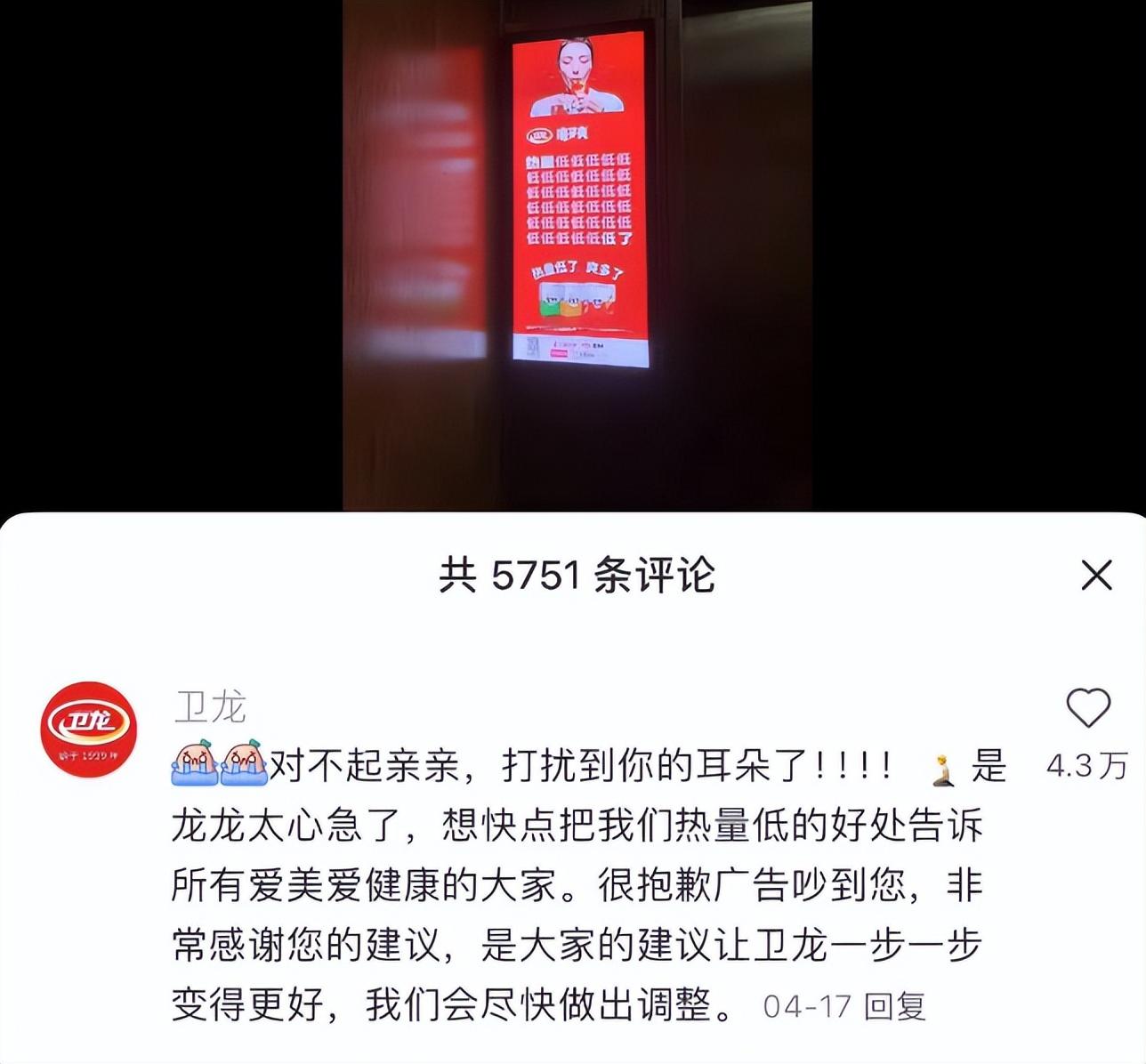 然而近期卫龙魔芋爽的电梯广告却因为“15秒22个低”太吵被网友吐槽称“这是一条让打工人发疯的电梯广告”,还有网友直呼卫龙广告“扰民”。卫龙官方对此回复表示“会尽快做出调整。”