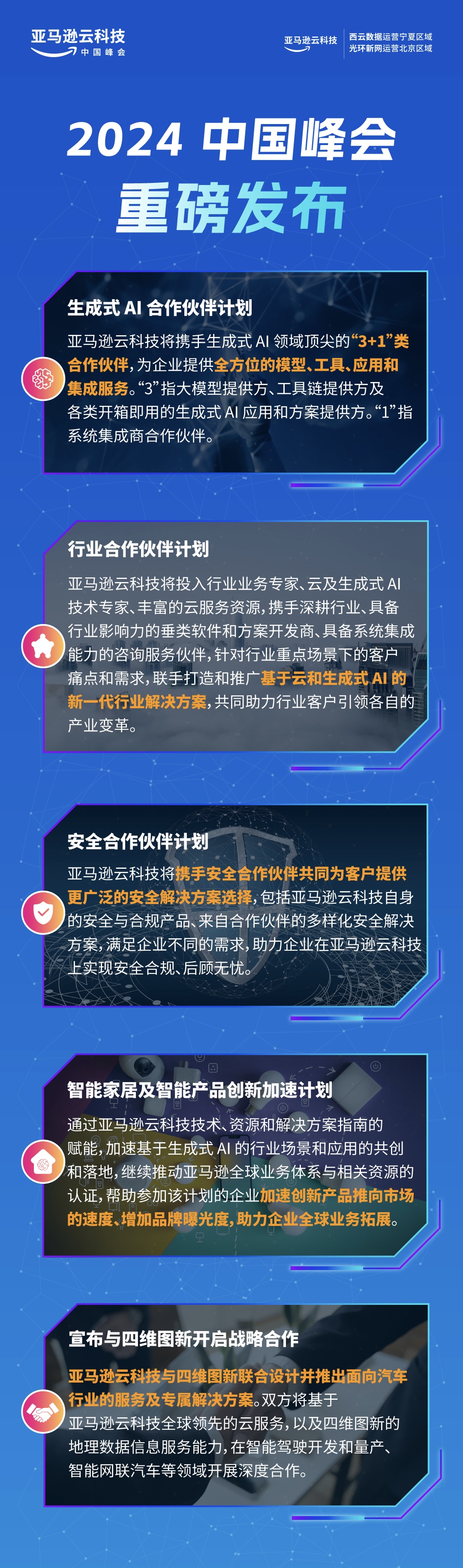 合作伙伴是亚马逊云科技为行业客户提供更优质服务的主力军。本次大会上,亚马逊云科技宣布推出“亚马逊云科技生成式AI伙伴计划”“亚马逊云科技行业合作伙伴计划”。