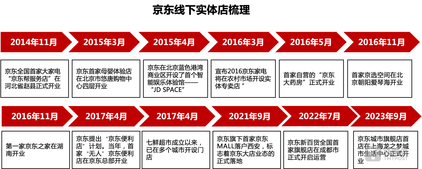 京东的线下商业布局从2014年开始起步,经过10年的发展,已经形成了多业态、多层次的门店体系,覆盖了从大型零售门店到小型社区门店的多个层次和类型。