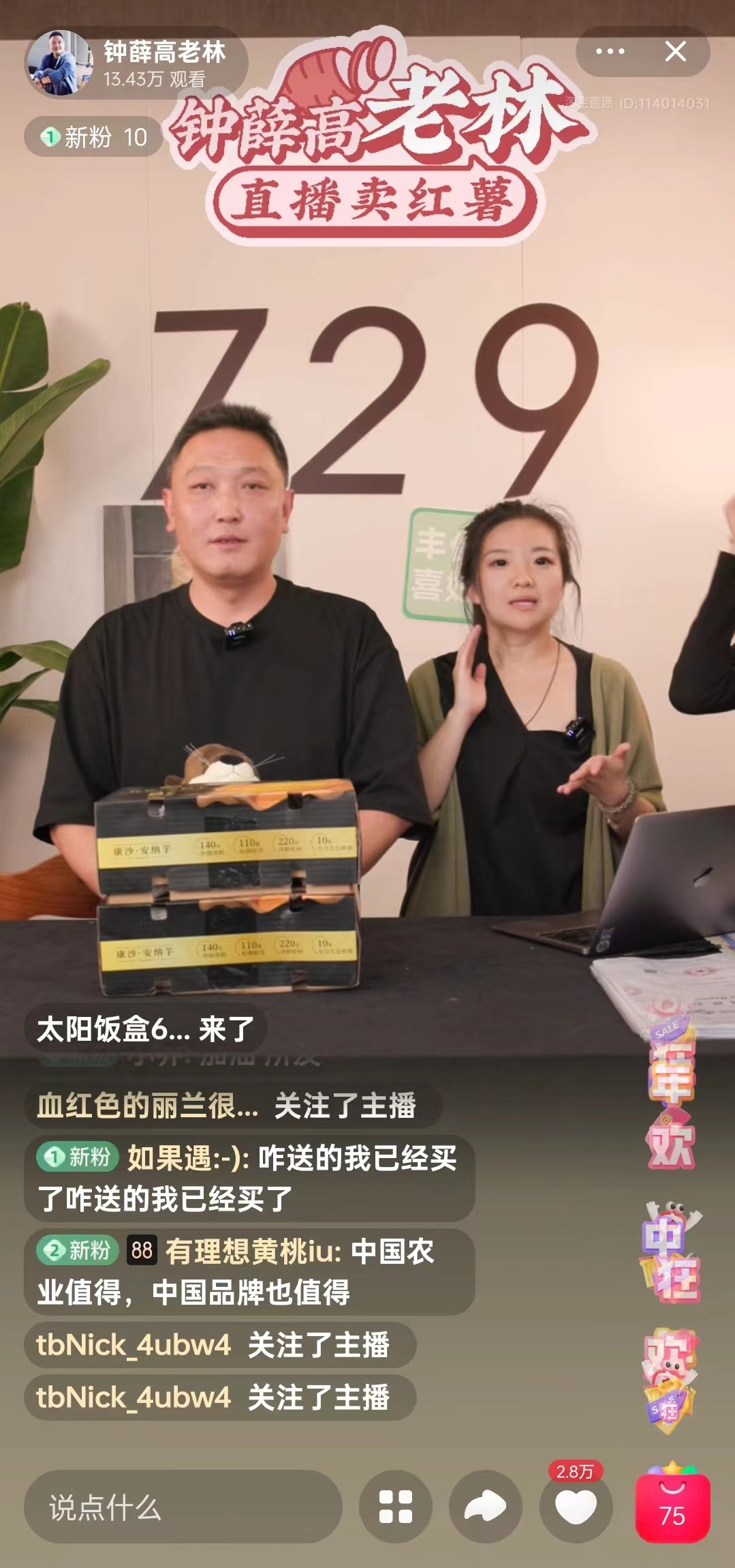 紧接着,“卖红薯”成了与林盛深度绑定的符号,再到5月28日晚7点,林盛通过淘宝账号“钟薛高老林”,开始了第一场直播带货,主推产品就是红薯。