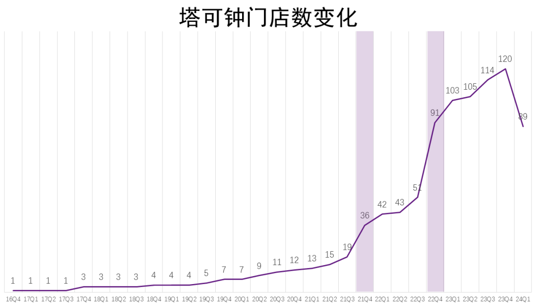 2021年Q4的业绩会中,管理层宣布加大了塔可钟的投资力度,希望加速门店增长,2022年,塔可钟的门店翻了一翻。并在2023年2月19日官宣门店破百。