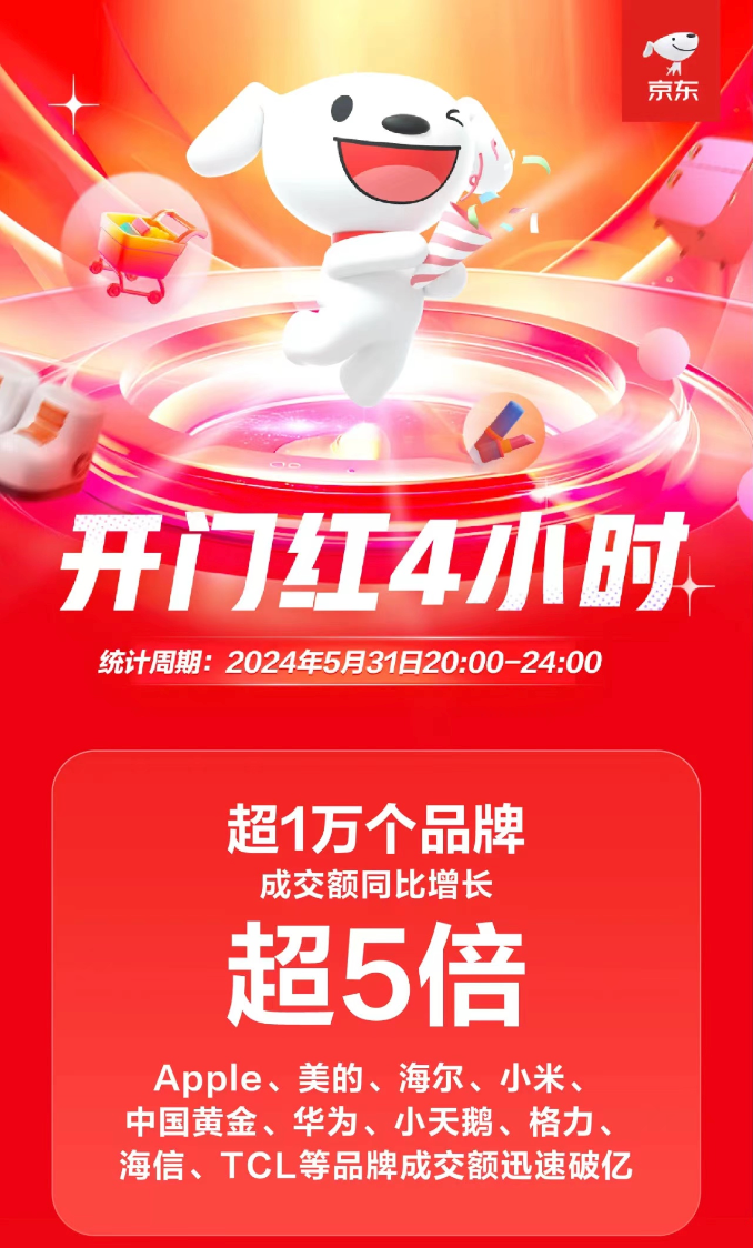 5月31日20:00,京东618年中大促「开门红」正式开启,在其交出的第一份战报中,4小时内超700个品牌成交量额增长超100%,再次刷新记录。而天猫、淘宝也在同一时间开启「狂欢日」活动,同样在战报中提到了多个品牌成交额刷新记录的消息。这意味着,今年618大战终于打响了第一枪。