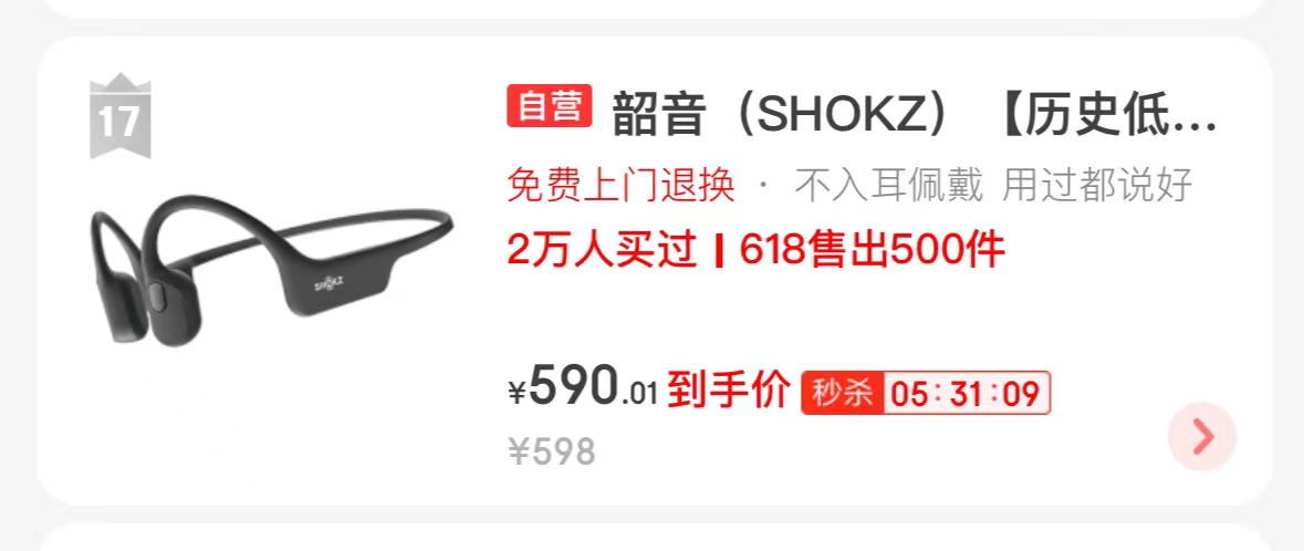 除了AI加持的手机、电脑等产品热销之外,像「开放式耳机」这类穿戴领域的新星也开始受到消费者的关注。京东热销榜上,韶音、Bose的开放式耳机均达到618期间销量超500件的好成绩,而小米才发布不久的开放式耳机挤入前十名。当然,无线耳机排行榜上,苹果靠着「打骨折」的策略,还是在前五名中拿下了三个席位。