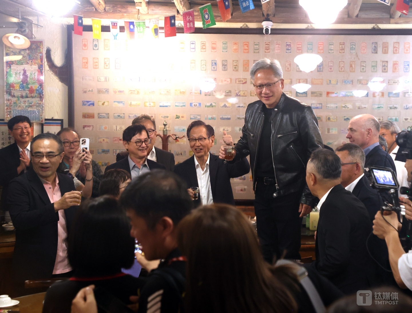 有趣的是,发布会前夕的一场酒会上,黄仁勋宴请台系供应链厂商高管——华硕董事长施崇棠、和硕董事长童子贤、鸿海董事长刘扬伟、纬创总经理林建勋、纬颖董事长洪丽宁、广达董事长林百里、云达(广达旗下服务器代工厂)总经理杨麒令、英业达董事长叶力诚、英业达总经理蔡枝安、台达电董事长郑平、宜鼎董事长简川胜、广运董事长谢清福及CEO谢明凯等10余人,参与者的身价共计1.5万亿元人民币,每桌消费约1040元。而且,黄仁勋还请台积电创始人张忠谋一起逛夜市,引发所有人的关注。