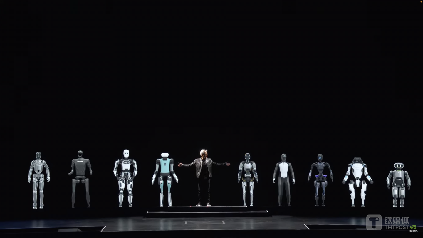 “下一个大批量机器人产品将由机器人工厂制造,内部有机器人,可能是人形机器人。近年来,这在基础模型的认知的能力和正在发展的世界理解能力方面都有很大进步。我对这个领域感到非常兴奋,因为很明显,最容易适应世界的机器人是人类或机器人,‘我们’(人形机器人)为我们建造世界。我们还必须获取最多的数据来训练这些机器人,因为我们有相同的体质。或许,你将来会在云中构建可以四处走动的计算机。事实证明,机器人技术将有巨大的前景空间,所以这对我们来说将是一段非凡的未来旅程。”黄仁勋在演讲结尾表示。