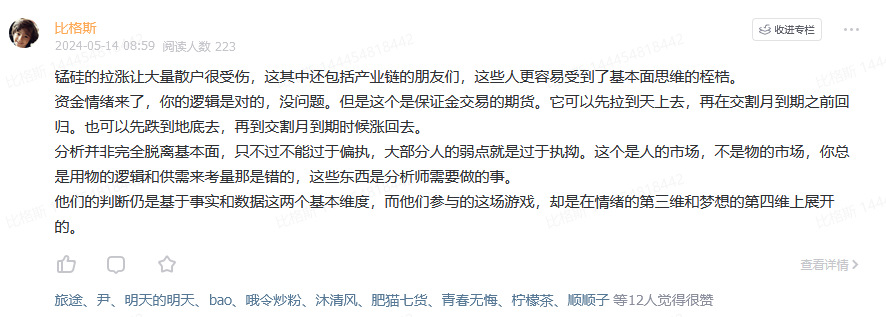 硅铁、锰硅的行情实际上和基本面关系不大,参与市场交易和你对基本面的了解,以及你的知识储备和智力水平,关系也不大。这个市场最不缺就是聪明的人,这些人来到市场最终的结果大都也是头破血流,但很可能他们永远找不到原因。