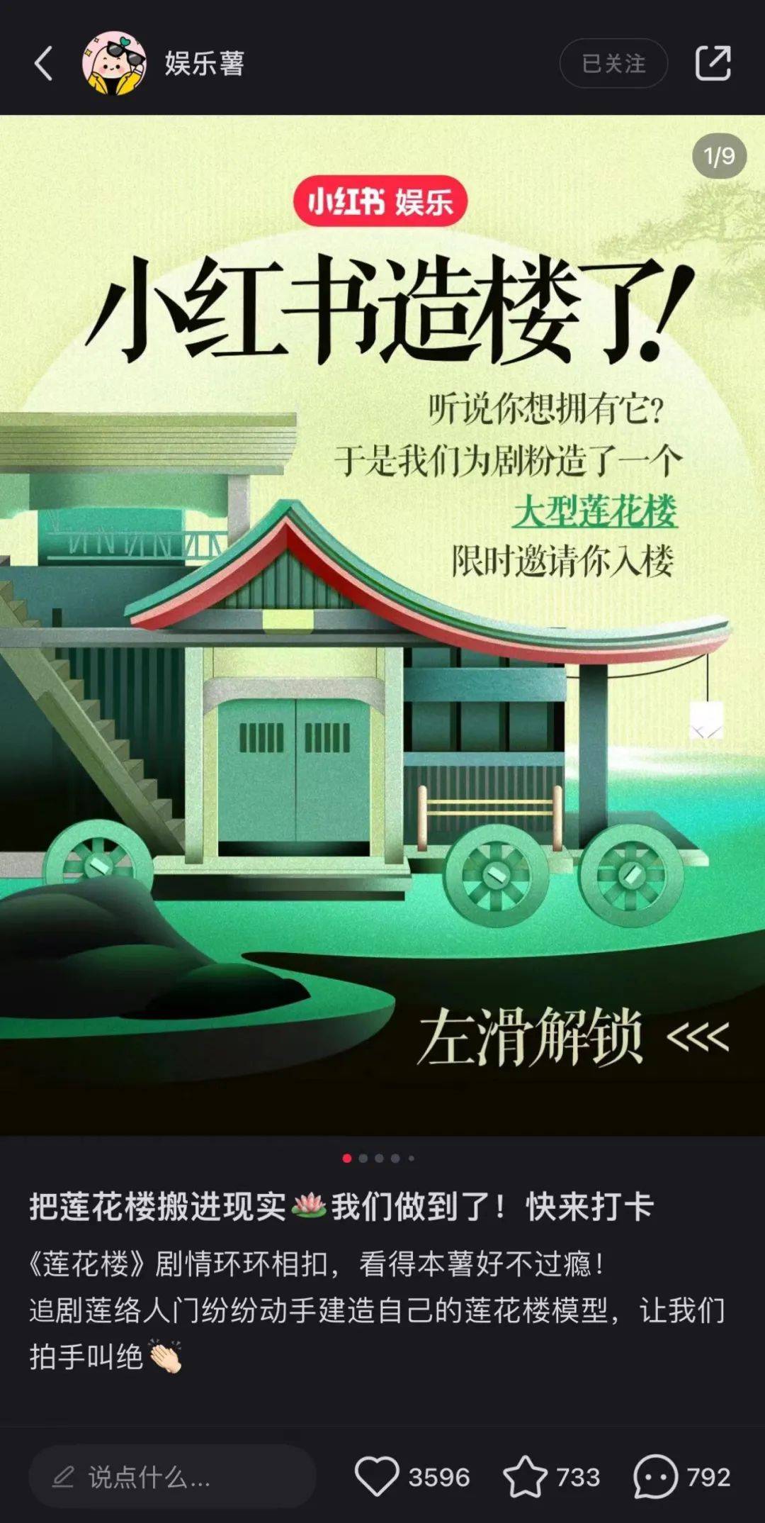 在去年暑期口碑坚挺的《莲花楼》热播时,小红书也在站内发起互动装置展活动,在线下1:1复原莲花楼,吸引了一批剧粉慕名而来线下打卡。