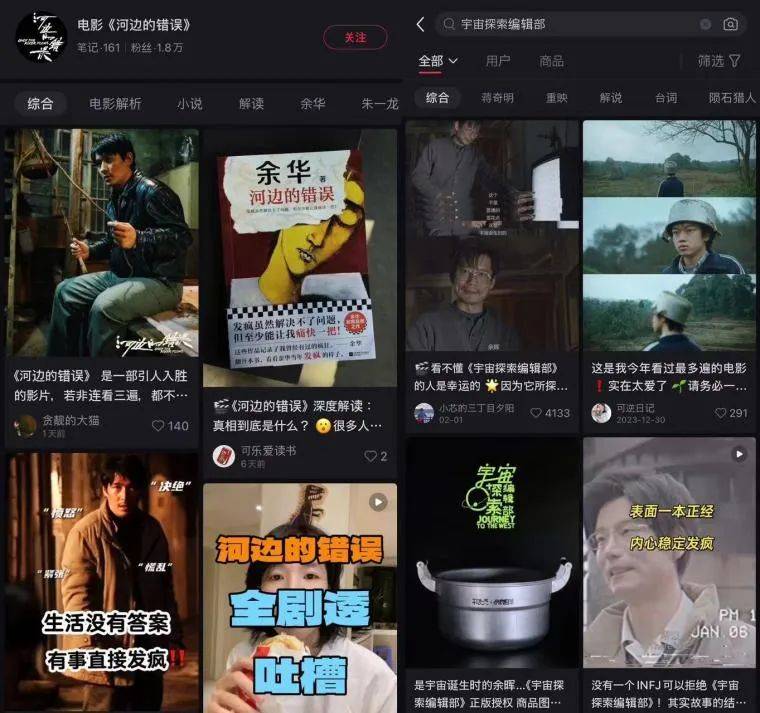 以电影为例,此前在小红书平台上声量较大的《河边的错误》《宇宙探索编辑部》《封神第一部》均符合“种草”调性。《河边的错误》《宇宙探索编辑部》作为受众群体相对较窄的文艺片,原本也需要一个话题放大点打破圈层。而《封神第一部》则囿于前期热度不佳,也是依靠着观众的讨论及二创打开了影片的长线。
