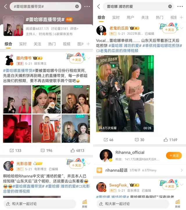 线下快闪与直播间的结合也成为流行趋势。典型例如FENTY BEAUTY BY RIHANNA,其线上惊喜日活动便与上海的限时快闪活动结合,蕾哈娜亲自到上海“摊煎饼”的玩法也引爆了社交场,引发大量粉丝加入讨论。