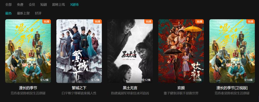 同年腾讯成立了X剧场,X剧场事实上并不仅限于悬疑,而是针对更具体追剧诉求,“X”本身也代表着无限可能,这是腾讯在爱奇艺悬疑剧场上的迭代形式,也为整个悬疑市场带来了新思路。目前纳入X剧场的剧集仅有《漫长的季节》、《繁城之下》、《黑土无言》、《欢颜》,这四部不管是视觉风格,时代背景,还是主题材都不尽相同,而这样的“不同”也许正是对抗内容标准化同质化的核心。