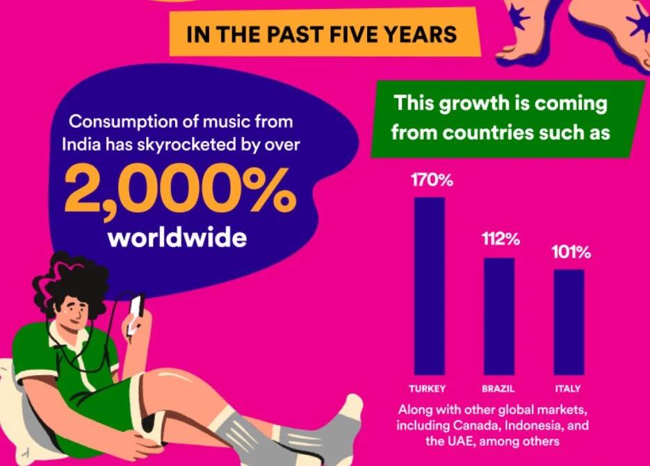 除了印度丰富的文化遗产和宝莱坞的电影工业在全球的影响力加持外,流媒体的普及极大地推动了印度音乐的本土化。在2019年,Spotify进入印度的第一年,该平台上付费音乐中有70%是国际音乐,而如今却比例互换,该平台上有70%的付费音乐来自印度本地音乐。据了解,去年印度使用Spotify For Artists的艺术家数量翻了一倍,达到28000人。