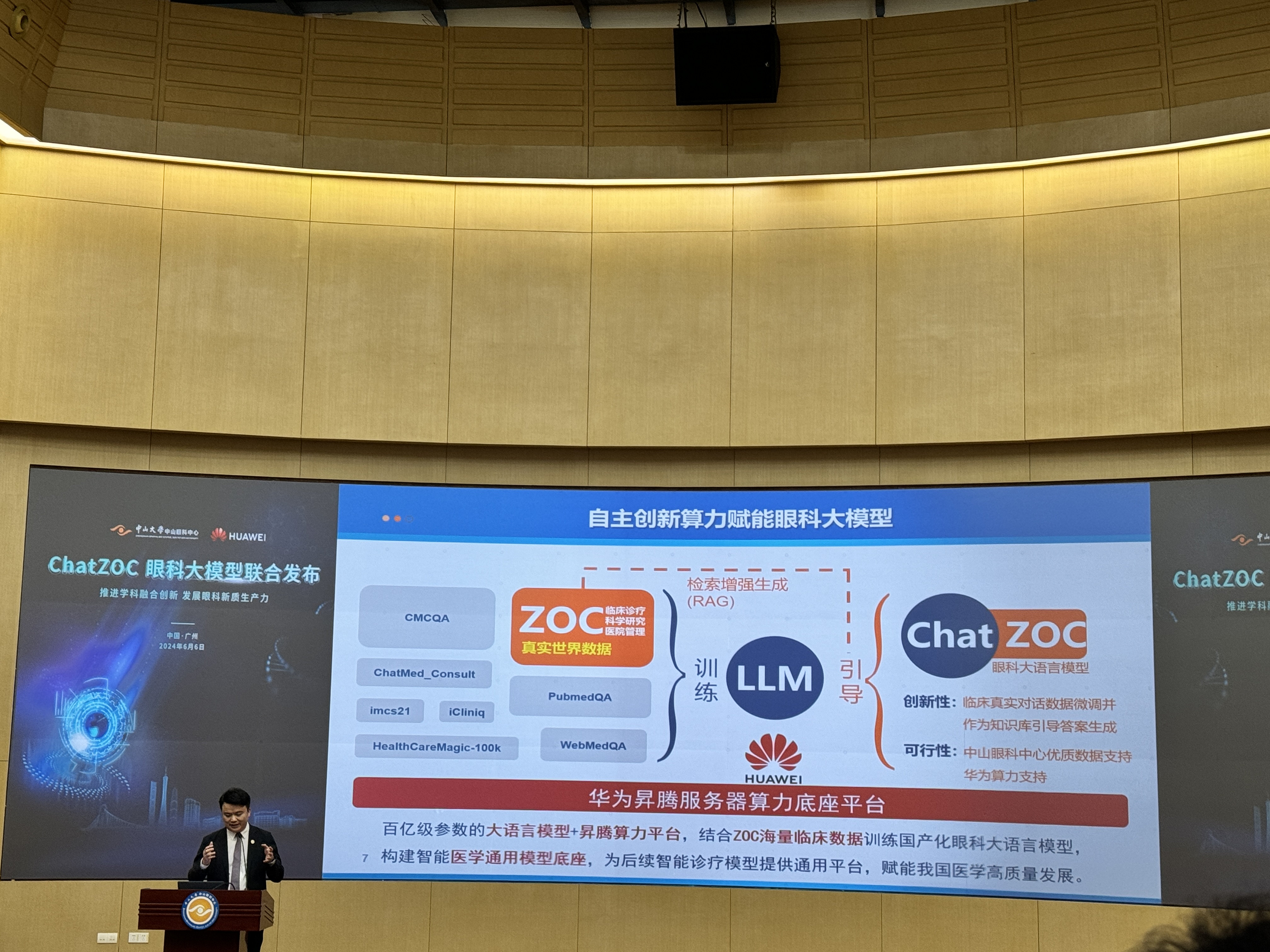 钛媒体 App 6月6日消息,2024年6月6日是第29个全国爱眼日,中山大学中山眼科中心与华为联合发布基于人工智能技术研究构建的眼科大模型ChatZOC。