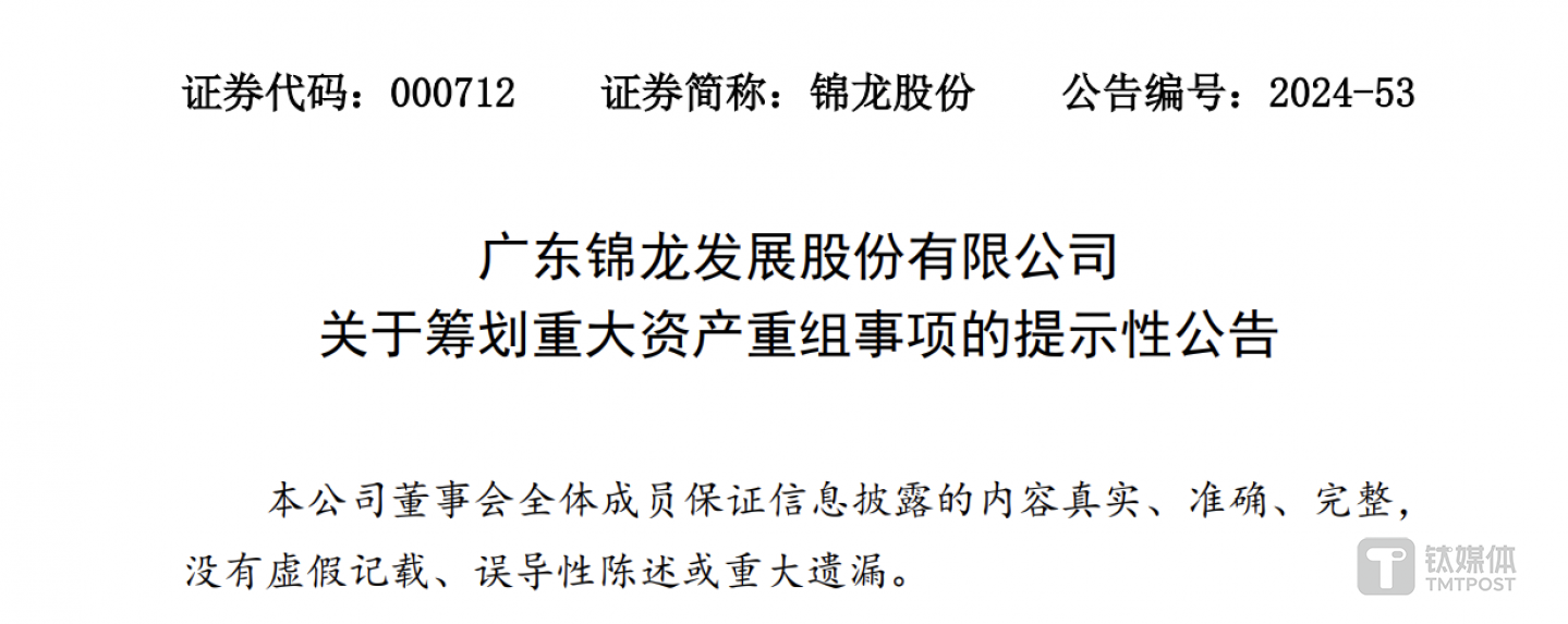 此前,锦龙股份还计划清仓东莞证券股份。去年11月4日,锦龙股份发布了《关于筹划重大资产重组事项的提示性公告》,公司拟转让所持有的东莞证券股份有限公司(下称东莞证券)股份。随后在当年12月,公司调增转让东莞证券股份的股数,转让上限为6亿股(占东莞证券总股本的40%)