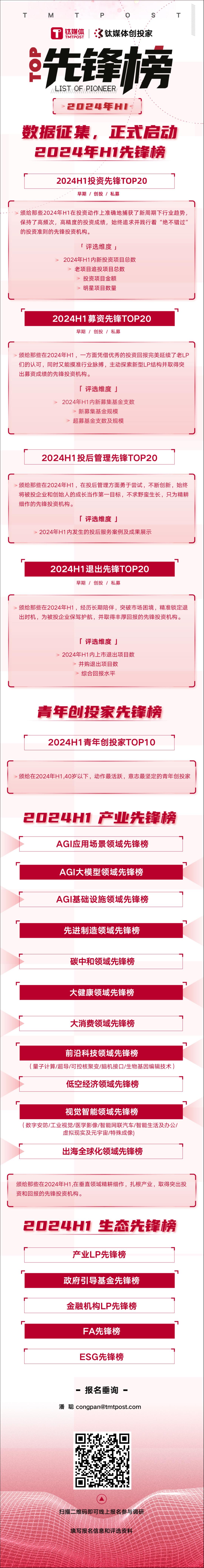 值此仲夏,钛媒体创投家向国内所有活跃的投资机构发出邀请,共同启动《2024年H1先锋榜》的数据征集。