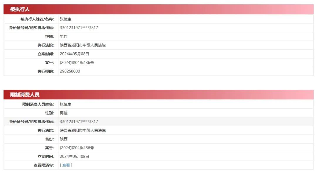 与此同时,张国标、张樟生等人也被出具了《限制消费令》,不得实施高消费及非生活和工作必需的消费行为。