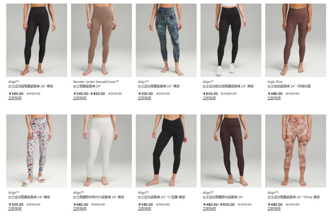 在线上,lululemon高调入驻抖音,将抖音视为连接中国下沉市场消费者的关键桥梁。眼下618电商节将至,lululemon经典款瑜伽裤Align正进行5折销售,折扣价为470元。线下,lululemon向三四线城市渗透,陆续在贵阳、济南、无锡、石家庄、郑州、青岛等地开设门店,开始围猎“县城贵妇”。