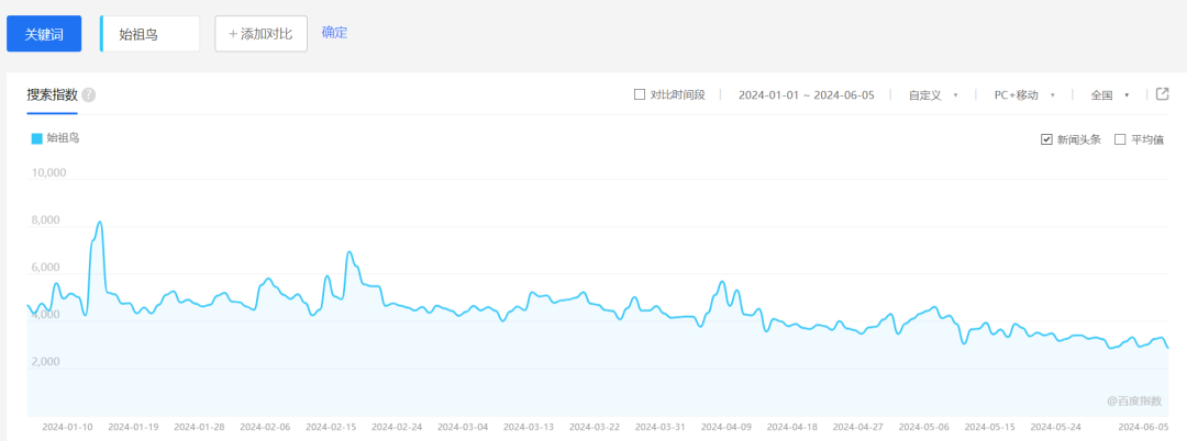 虽然它们在社交媒体上成了新中产的心头好,但随着“平替潮”的兴起,始祖鸟和萨洛蒙的热度也开始下降。百度指数显示,始祖鸟的热度已经从今年年初高点的8186下降至6月初的3298。
