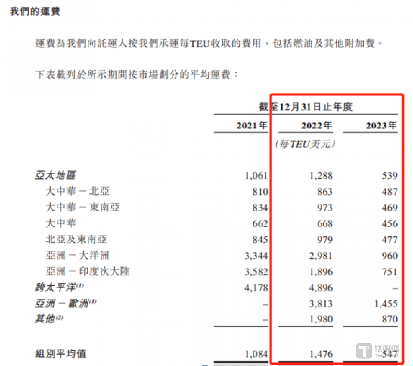 在航运量方面,报告期内,德翔海运的航运量分别为158.36万TEU、155.91万TEU、146.64万TEU,其中2023年的航运量较2022年同比下滑5.96%。2023年在航运量仅同比下滑不到6%的情况下,公司的业绩为何会大崩盘?