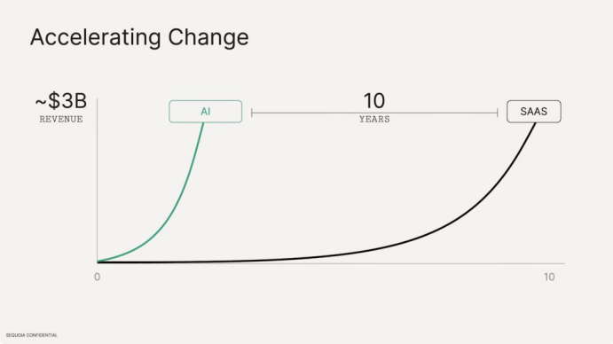 AI和SaaS 收入增速对比,来源:红杉美国