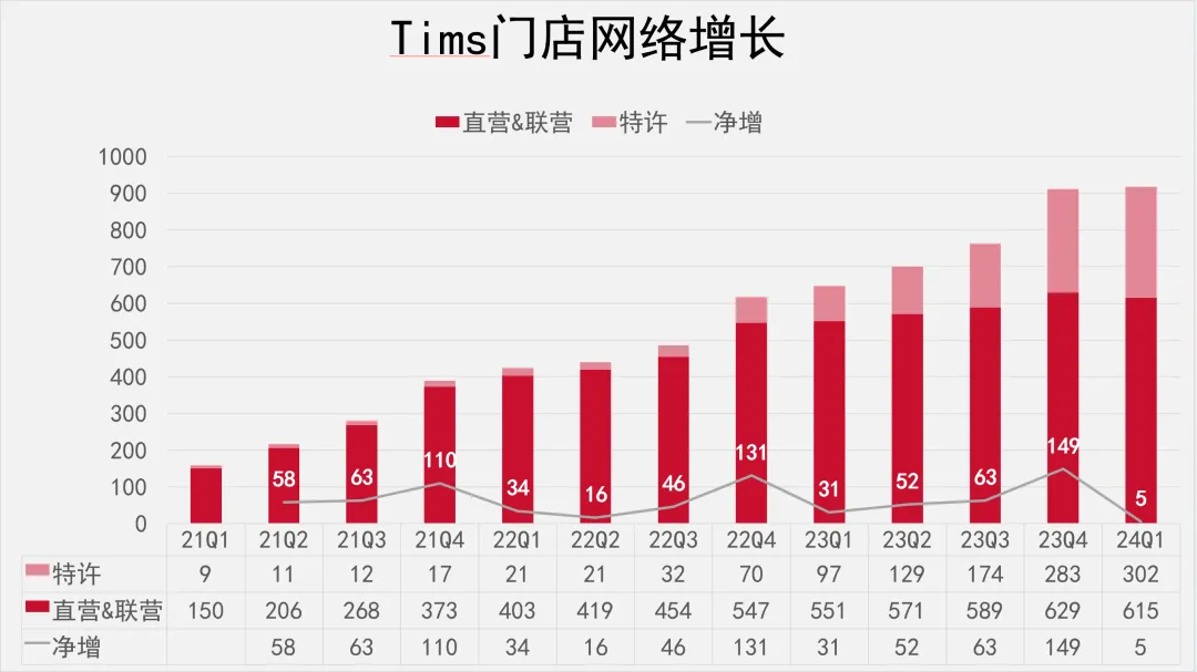 这是Tims自借壳上市以来最差的拓店记录。上一个季度净新增门店(149家)刚刚创下新高,2023年一季度也新增了31家门店。