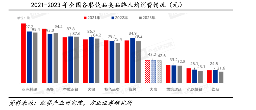 根据招商证券信息披露,2024年Q1,百胜中国旗下肯德基的销量同比增长4%,平均客单价同比下降6%。必胜客的销量同比增长8%,平均客单价同比下降12%。九毛九旗下太二餐厅的平均客单价在24年一季度下降至人民币73元,而2023年上半年和2023年下半年分别为人民币75元.