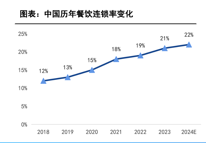 当行业环境仍暗淡无光时,连锁化率却稳步提升,在很大程度也改善了行业韧性,且随着餐饮企业规模扩大,门店数量增加,其对库存、出餐稳定性、菜单丰富度要求升级,行业标准化趋势加强。