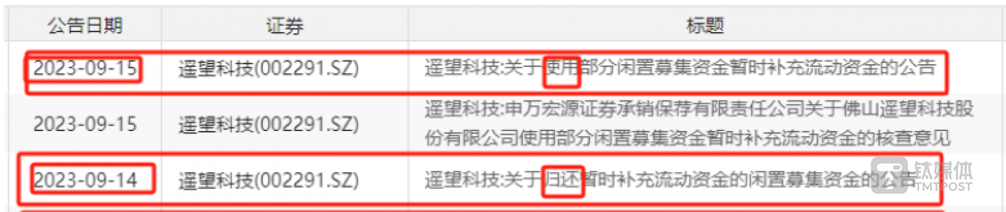 公司如此操作已不是头一次。2021年10月,29亿元定增资金刚到账,原本规划用于补流的8亿元就迅速按计划使用完毕,公司立刻宣布再用不超10亿元“闲置募集资金暂时补充流动资金”。12个月到期后(监管规定最长只能12个月),公司在2022年9月20日归还,9月21日就无缝对接,公告“取出”。