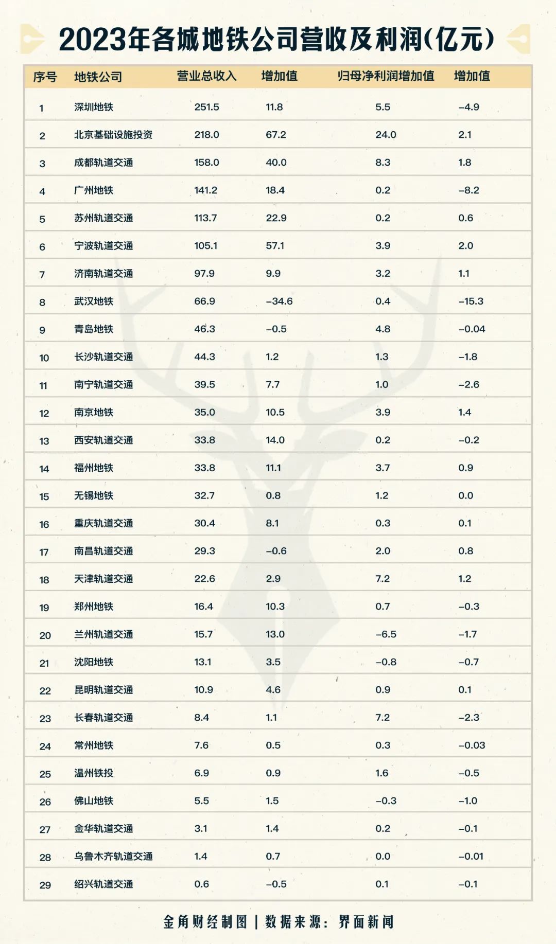 运营/票务收入上涨、总营收普遍上升,但利润却出现下滑,地铁普遍亏损的背后一言难尽。