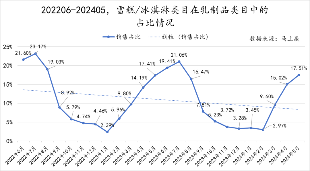 虽然在我们曾经复盘过的Q1线下零售消费情况中,2024年乳制品类目整体表现欠佳。但在类目内部看,雪糕/冰淇淋在今年的类目内占比同比好于去年,消费者在对消暑冰品的选项中,并没有遗忘雪糕/冰淇淋类产品的存在。