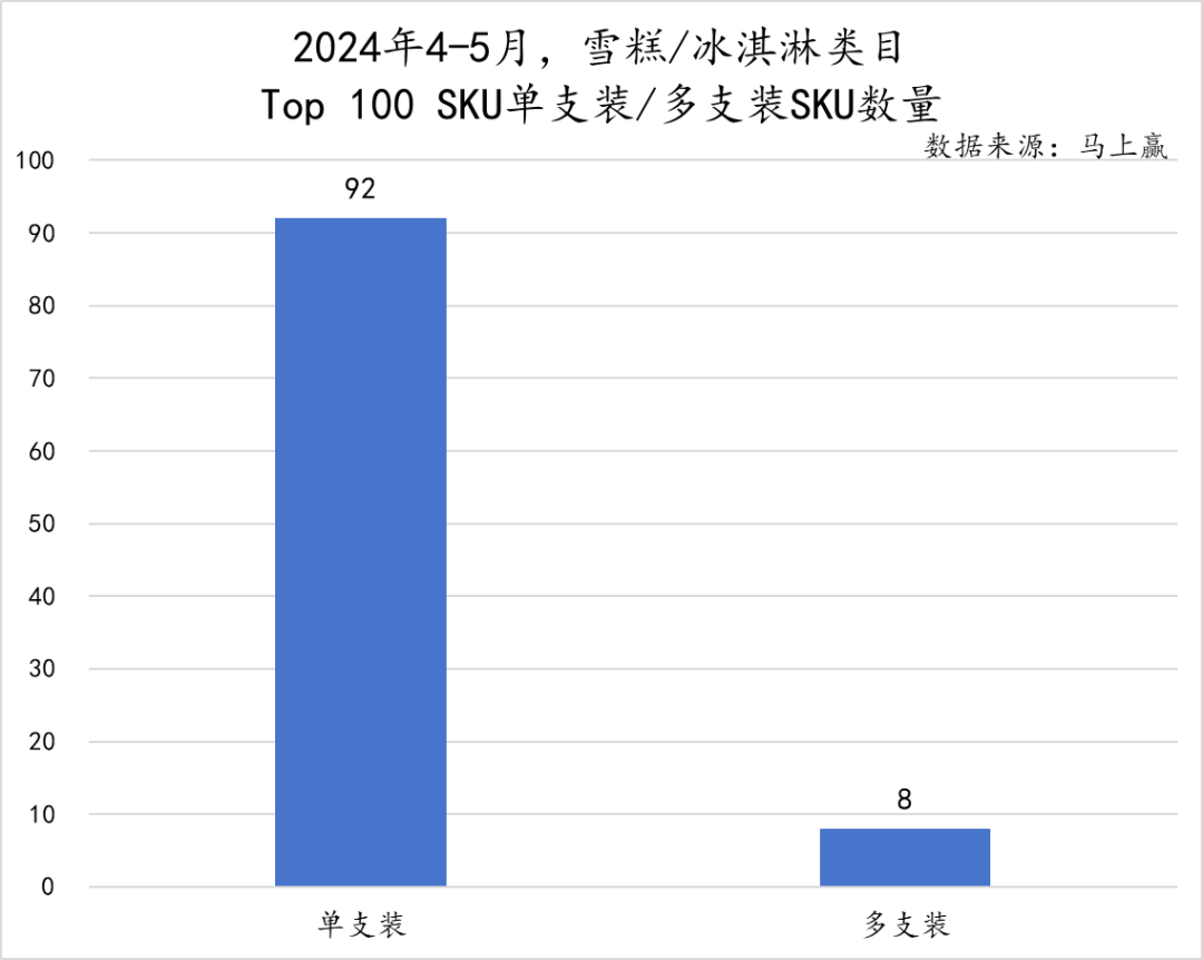 在2024年4-5月的TOP100 SKU中,我们发现共有92款单支装产品上榜,8款多支装产品上榜,8%左右的SKU数量代表着其有一定的市场空间,也或在未来有进一步成长的可能。
