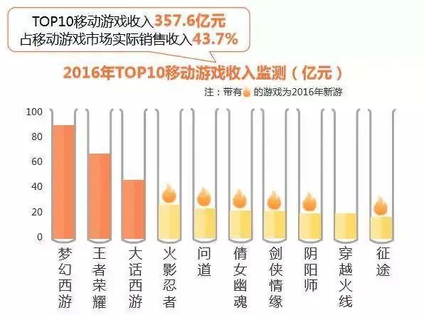 2016年,国产手游收入第一名依然是《梦幻西游》,《王者荣耀》可能是第一次也是最后一次屈居第二,腾讯的《火影忍者》排名第四,算是正式拉开了“正版IP授权”的序幕,网易在那年上线的《阴阳师》超过了《穿越火线》排名第八。