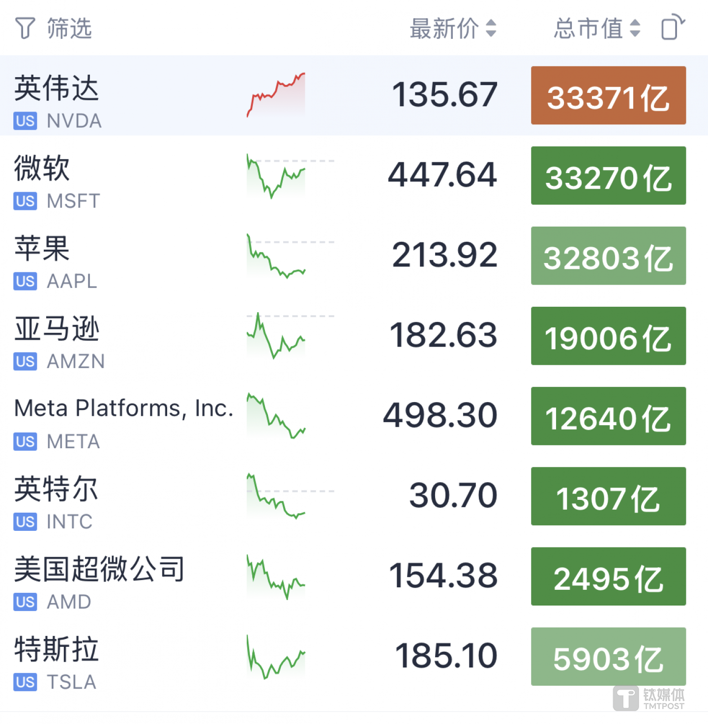 3.34万亿美元,相当于全球第六大经济体——英国2023年的GDP,同时也是12个茅台市值(1.94万亿元人民币)、25个英特尔、12个AMD市值规模,甚至是英特尔+AMD加一起的8.76倍。