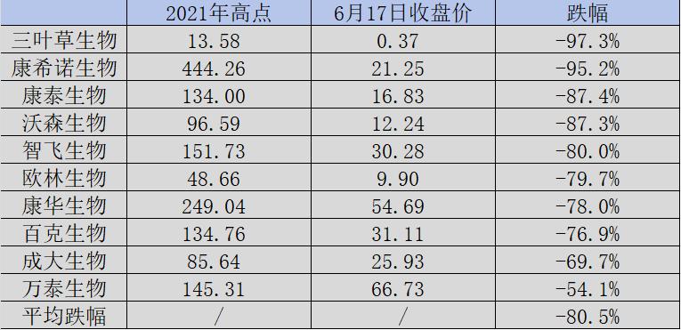 图:中国疫苗公司三年跌幅,来源:锦缎研究院