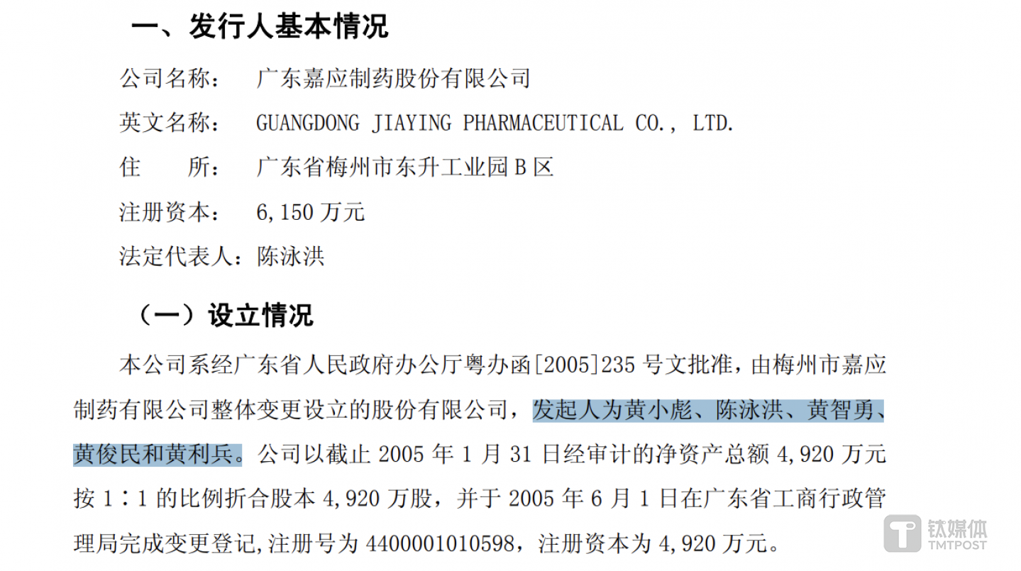 上市之初,嘉应制药只有黄小彪、陈泳洪、黄智勇、黄俊民、黄利兵5位股东。其中,黄小彪持股比例为27.04%,是公司的控股股东和实控人。