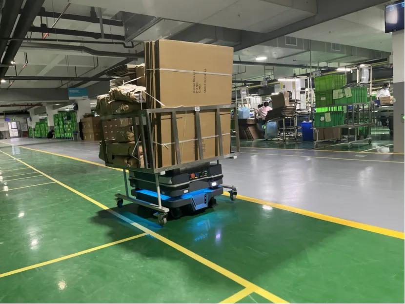 建霖车间智能运输设备正在工作中
