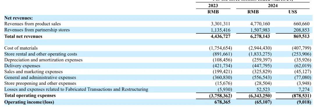 瑞幸2024年第一季度财报(图源 瑞幸财报)