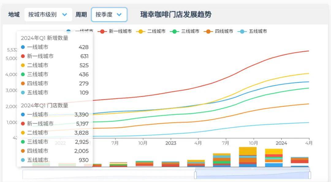 2024年第一季度瑞幸咖啡开店情况(图源 极海监测数据)