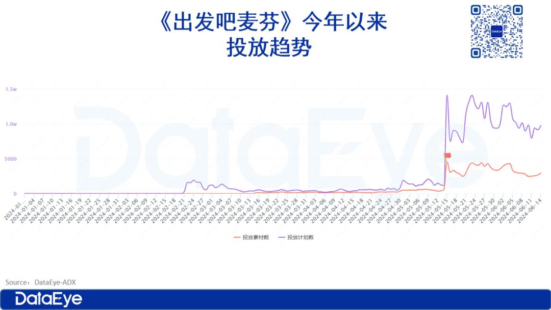 《出发吧麦芬》的买量素材投放呈现以下几个特点: