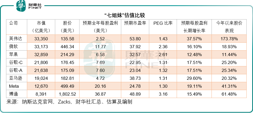 Zacks提供的分析师一致共识预测数据显示,英伟达的预期每股盈利长期增长率(未来三至五年)为“七姐妹”中的最高,达到37.57%。