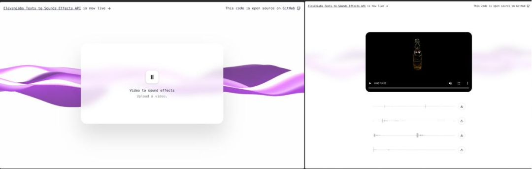 没过几小时,另一个AI音频克隆“扛把子”ElevenLabs就发布了文字到音频模型的API,并基于这一API做了一个Demo应用。这是当前唯一一个全自动将视频与音频相结合的AI工具,且完全开源、免费在线使用。