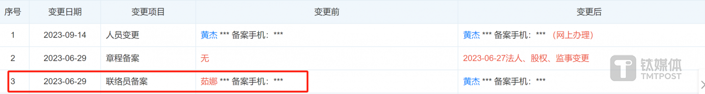 此外,湖南邦颂与湖南辉超之间疑似存在关联。据工商信息变动显示,湖南辉超之前的联络员备案人为茹娜与湖南邦颂主要人员茹娜同姓名。(本文首发钛媒体App,作者|翟智超)